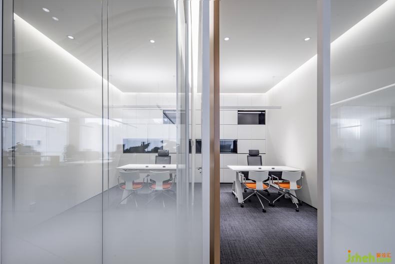 通而不透的空間立面處理上,使用通透的高隔斷玻璃作為分割不同功能間與動線之間的界面,總部辦公設(shè)計無論內(nèi)外視野都得到了解放,既有利于整體辦公環(huán)境的自然采光,也有效解決了不同部門之間討論而產(chǎn)生的噪音問題,在保證不同部門之間的隱私之下,讓人們有了更多的交流空間。