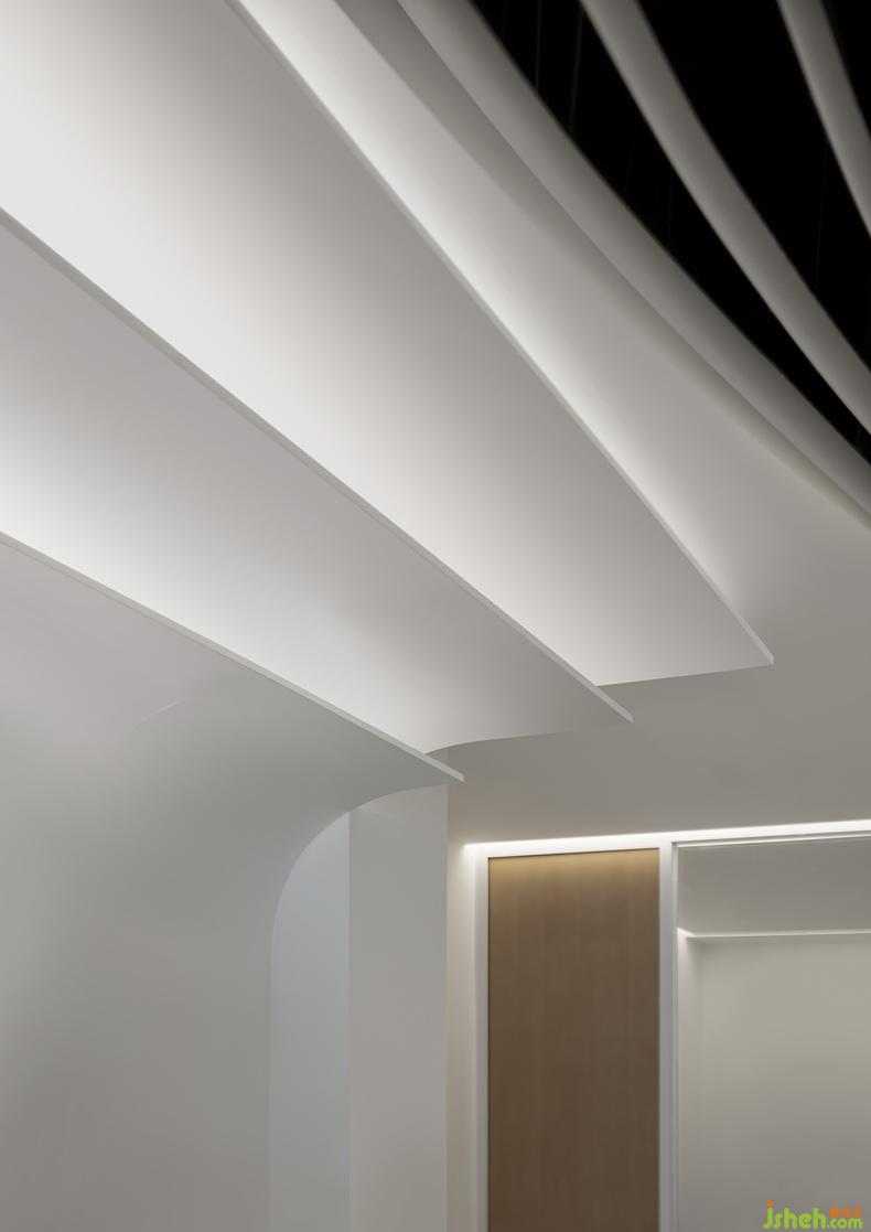 百年企業(yè)就像一本厚厚的典籍。設(shè)計概念以典籍為引線,總部辦公設(shè)計從前臺啟始的頁面造型開始,就像翻閱森那美這一百年的歷史,順著整條動線,天花似厚厚書頁層疊的造型,辦公室設(shè)計也似不斷涌動的海浪,象征了企業(yè)在持續(xù)發(fā)展中不斷構(gòu)筑美好前景脈絡(luò),構(gòu)成富有動態(tài)秩序、便于協(xié)作溝通的辦公氛圍。