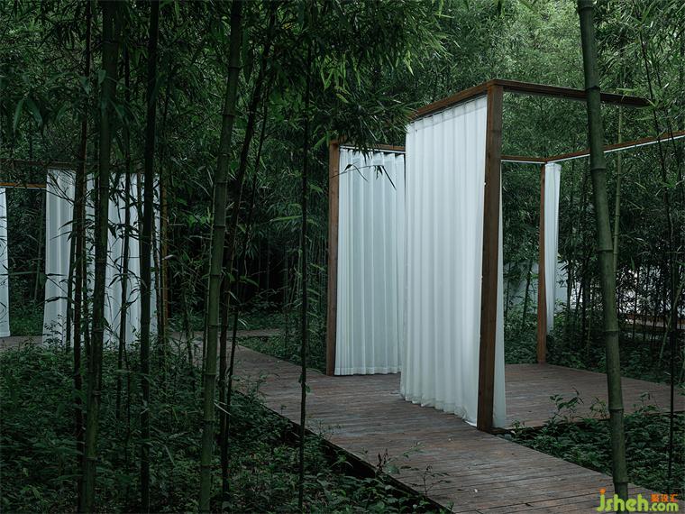 竹林的比例和序列關(guān)系被轉(zhuǎn)化為空間中的柱列,行走其間,光的力量和柱列的空間節(jié)奏感共同散發(fā)著生命力。