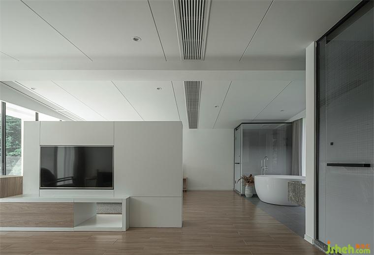 留白和灰是一種適度的從容,是空間的另一層境界。室外,天光與水光交融,自然和鳴;室內(nèi),以自然肌理雕琢質(zhì)感,溫潤(rùn)端雅。