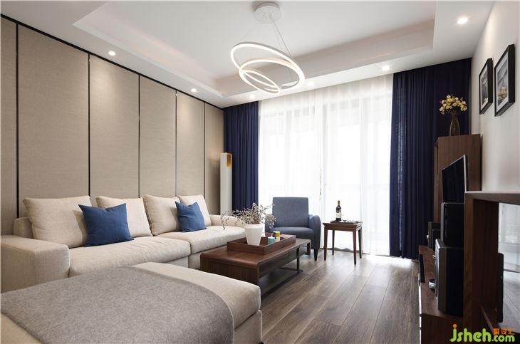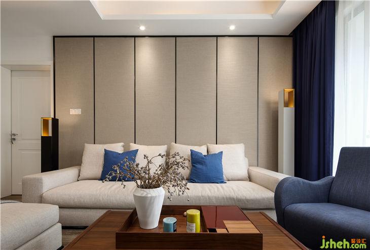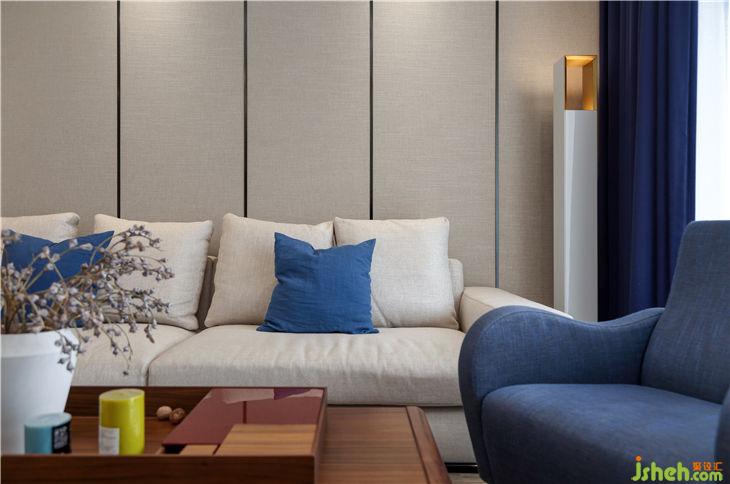 客廳:沙發(fā)背景墻的亞麻硬包和布藝沙發(fā)的材質(zhì)相得益彰。設(shè)計公司