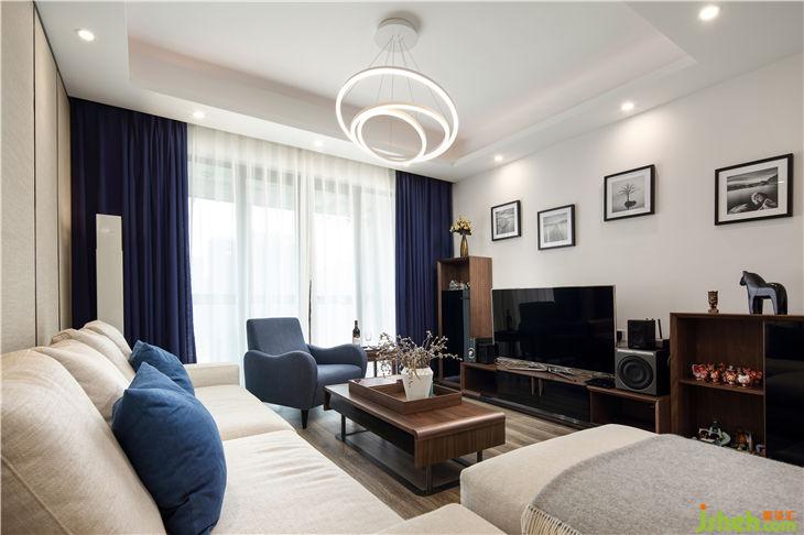 客廳:藍色的抱忱,單人沙發(fā)和窗簾遙相呼應(yīng),統(tǒng)一中又有些許變化。設(shè)計公司