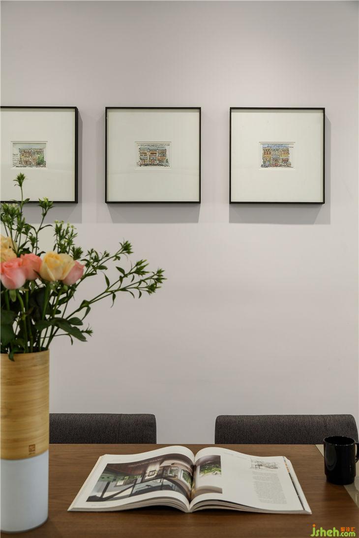 餐廳:墻上的裝飾畫裝裱的是設(shè)計(jì)師的原作,每一幅都有不同的故事,大有文章。