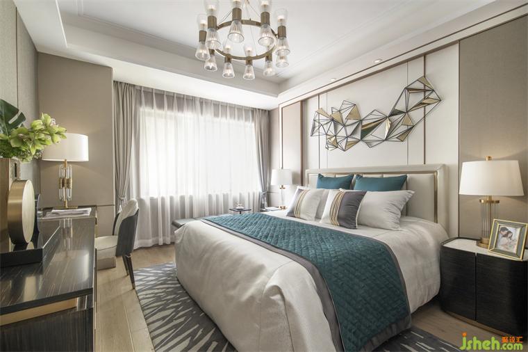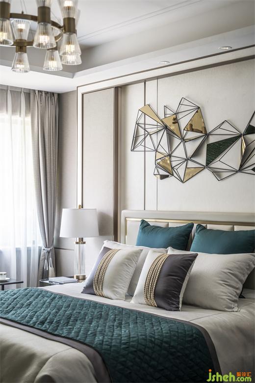 開放的客餐廳、廚房,空間更寬敞明亮,動(dòng)性亦更流暢。山水抽象畫,流動(dòng)的靈性,使空間更具層次及藝術(shù)格調(diào)。晶瑩剔透的水晶燈,精致的餐具擺飾,經(jīng)典時(shí)尚的格紋,無一不在宣示品質(zhì)的生活追求。此外,花飾朝氣蓬勃,樣板房設(shè)計(jì)不僅滿足女主的喜好,亦為空間注入自然活力。