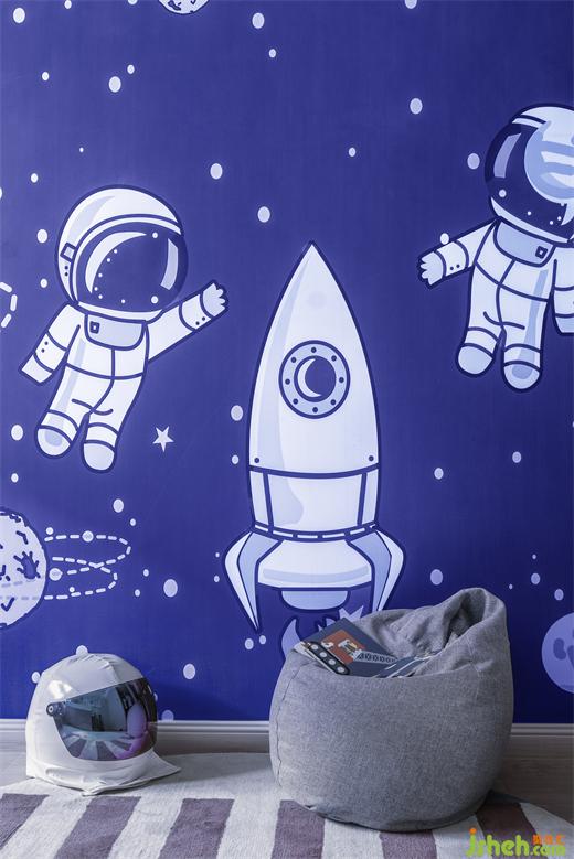 每個(gè)小男孩的心里都住著一個(gè)宇航員夢,他們天真、勇敢無畏,設(shè)計(jì)師精心呵護(hù)著他們的航空夢想。此兒童房空間宇宙氛圍濃重,大面積星球背景墻,望遠(yuǎn)鏡,火箭,樣板房設(shè)計(jì)宇航員等元素共同打造夢想的搖籃,強(qiáng)化孩子追逐夢想及探索未知的欲望。