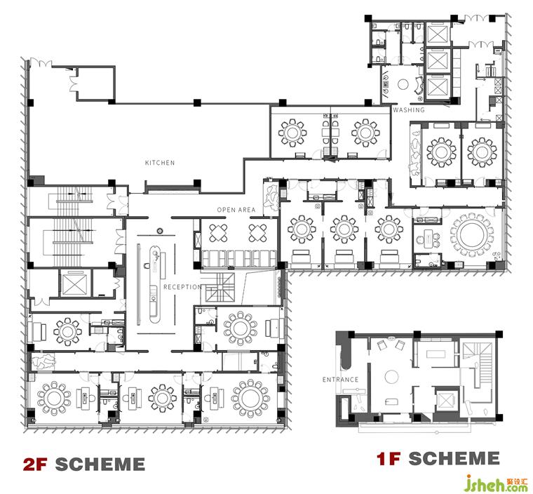 餐廳分為2層,一層主要功能為接待,