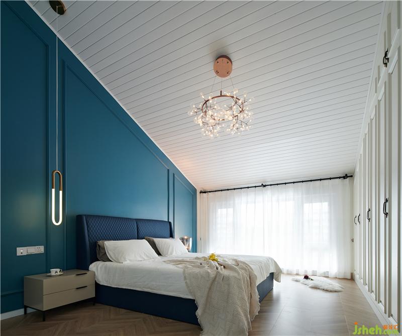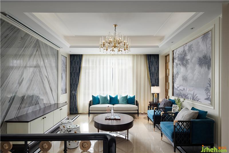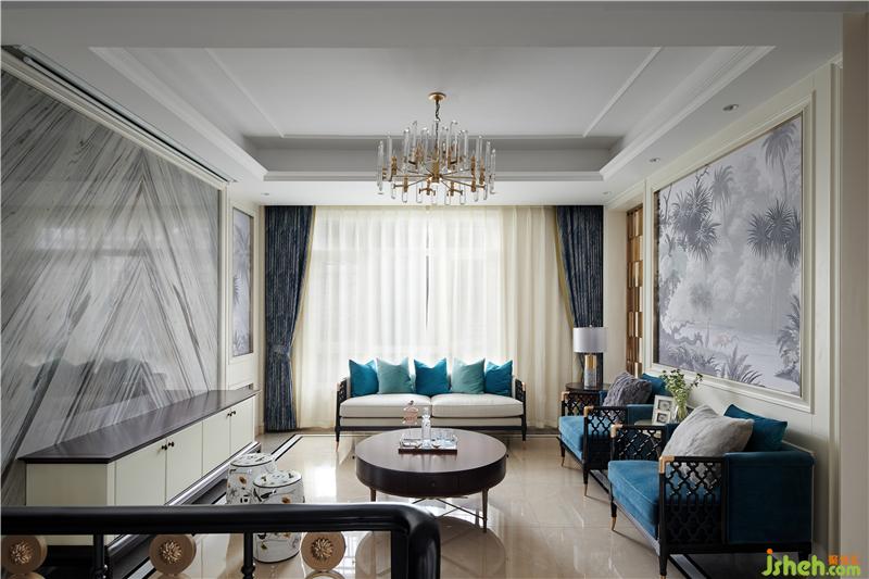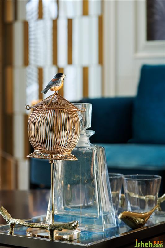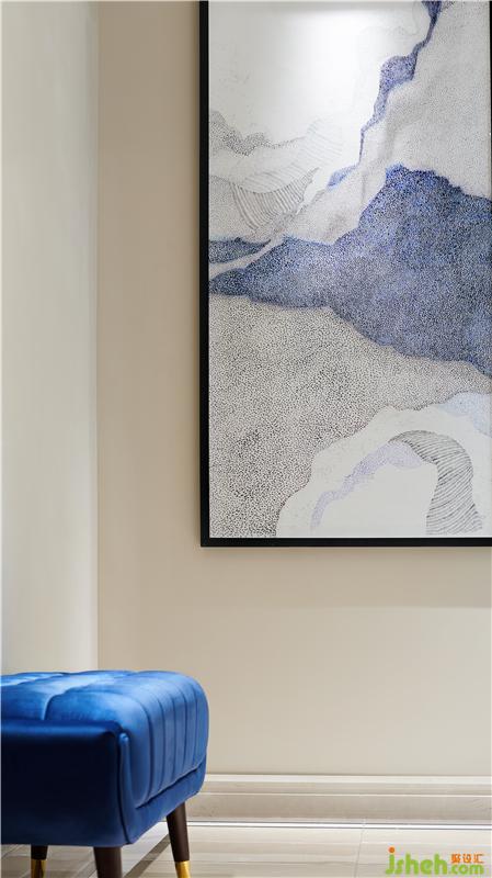 本項(xiàng)目圍繞當(dāng)代歐式雅致生活倡導(dǎo)的人群生活方式展開,藍(lán)色家私與淺色面料強(qiáng)烈而時(shí)尚,加入適當(dāng)?shù)纳嗜诤掀渲?,加?qiáng)空間的體驗(yàn)感和參與感。雅致的幾何文理點(diǎn)綴以時(shí)尚的柳丁,舒適的絲絨材質(zhì)則與雅致的香檳金金屬產(chǎn)生碰撞,點(diǎn)綴熱烈的顏色系花藝或飾品提升空間時(shí)尚的氣息,通過這些主打元素的連續(xù)性使用,以及材質(zhì)層次豐富的打造,呈現(xiàn)出歐式雅致的時(shí)尚情懷。真皮與布藝質(zhì)感的沙發(fā),金屬質(zhì)感的茶幾與吊燈,絨毛地毯,木制電視柜,玻璃器皿..裝修材質(zhì)多樣化的綜合運(yùn)用讓材料之間的層次更加豐富,剛與柔,光與暗,虛與實(shí),輕與重的對比更加清晰,利用材質(zhì)的差異化極大地充實(shí)了視覺感受,體會(huì)到不同質(zhì)感帶來的多重體驗(yàn)。色彩鮮明的壁畫組合為奢華的空間之中增添了更多的藝術(shù)氣息,柔和的質(zhì)感中和了金屬、瓷磚的冷硬,帶來更舒適的審美享受。