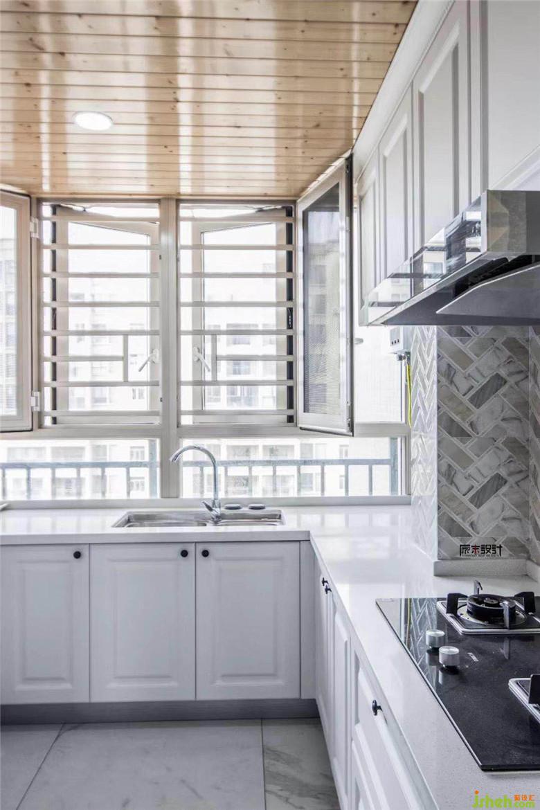 室內(nèi)設(shè)計(jì)師把廚房和北陽(yáng)臺(tái)合并,擴(kuò)大了廚房的面積,在保證功能需求的同時(shí),廚房的采光性也更好了