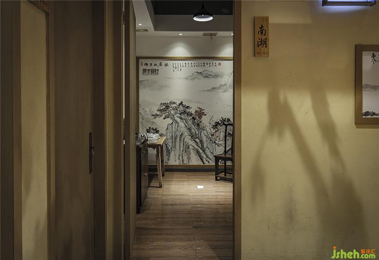 不獨支公住,曾經(jīng)陸羽居。室內(nèi)設(shè)計師將木欄桿把空間分割得剛剛好,搭配在走廊上的加上墨水畫,使人走在其中會覺得身在其境一樣。餐廳設(shè)計