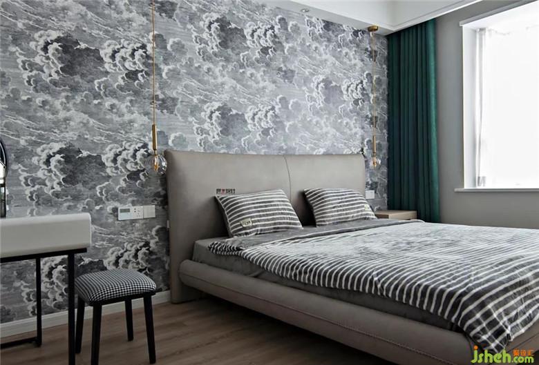 主臥裝修公司采用網(wǎng)紅云墻紙鋪貼增加了臥室的神秘感,搭配上床品的點(diǎn)綴提升了空間層次和質(zhì)感。