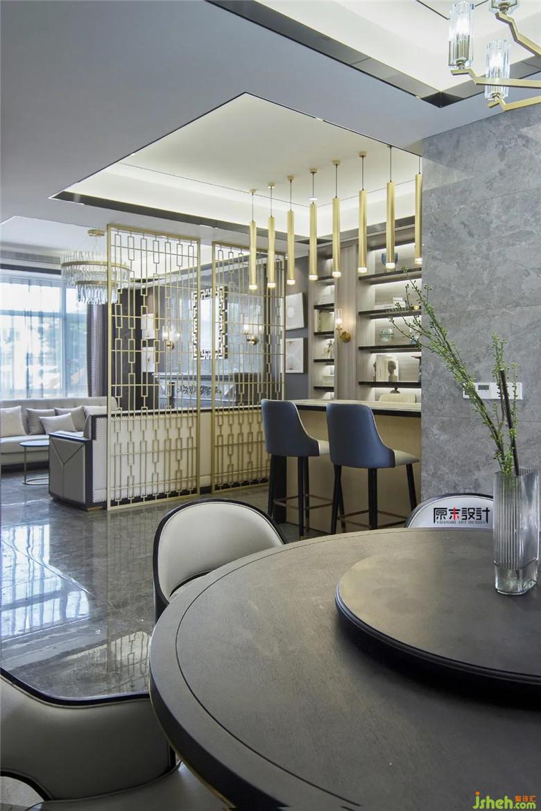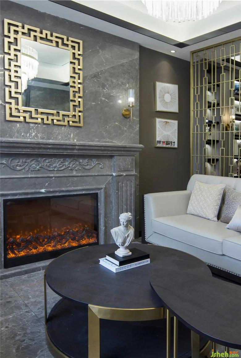 ▲ 不同灰調(diào)的深淺明暗,理性又自由的律動(dòng),通過秩序與想象的碰撞,打破過于嚴(yán)謹(jǐn)?shù)木惺?,產(chǎn)生放松愉悅的視覺享受,將別墅裝飾設(shè)計(jì)描繪的生活美學(xué)徐徐展開。
