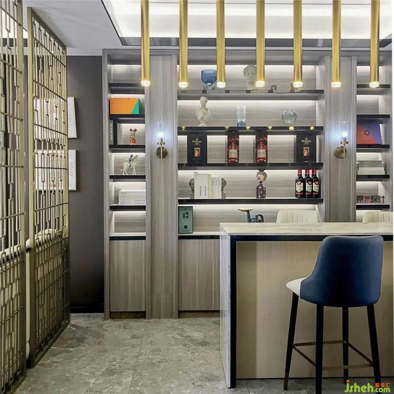 ▲別墅裝飾設(shè)計(jì)將生活的邊界淡化,開敞的客餐廳與吧臺(tái)貫通共融,功能與美學(xué)達(dá)到統(tǒng)一,家人情感的交流隨之升華。讓這個(gè)妙趣橫生的空間有了更多的可能性,派對、簡餐、品酒、聚會(huì)...,演繹了豐富的社交理想場所。