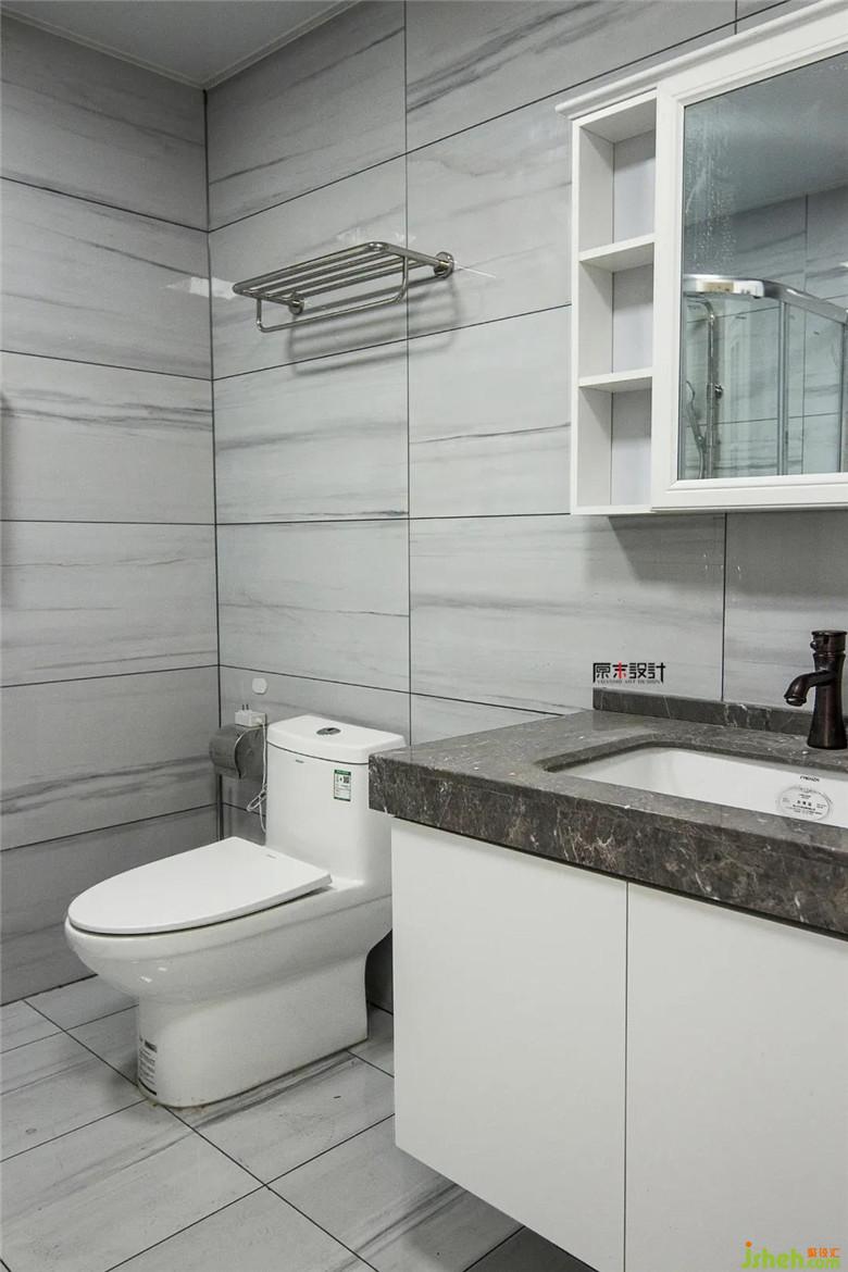 ▲ 衛(wèi)生間的浴室柜懸空,不留衛(wèi)生死角,它既能整體收納,又美觀實用,每個細節(jié)都很精致。
