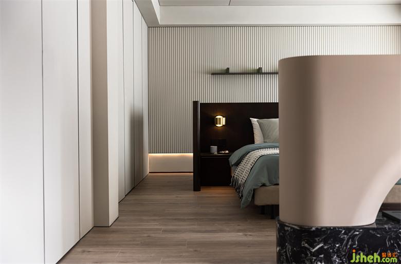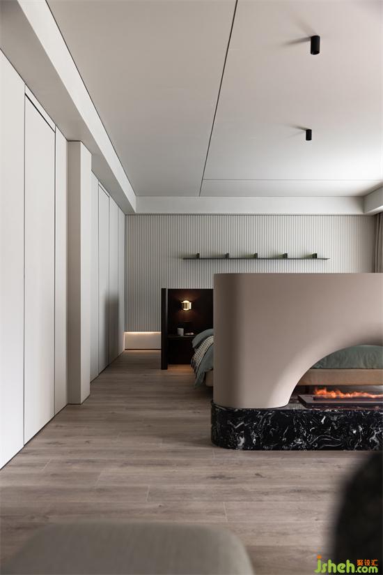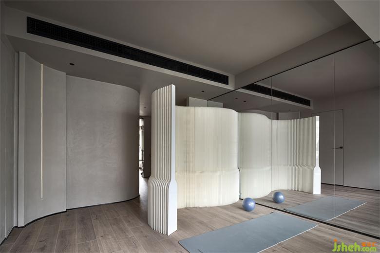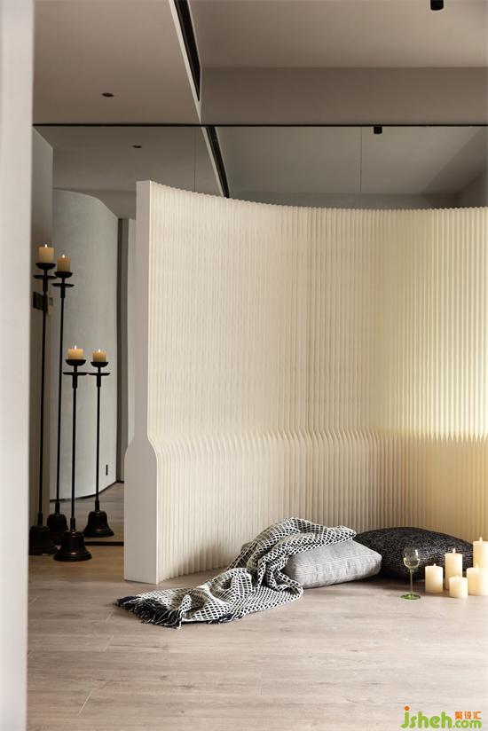 觀影、游動,折疊式的屏風(fēng)提供了多種空間變化的可能——靜謐燈光下的獨享安室內(nèi)設(shè)計師靜模式、輕松自如的瑜伽、打坐、冥想與紅酒配電影的浪漫模式在這空間中隨意切換,讓她享受自己在家的時間。
