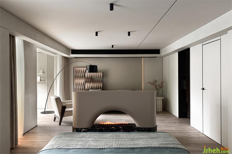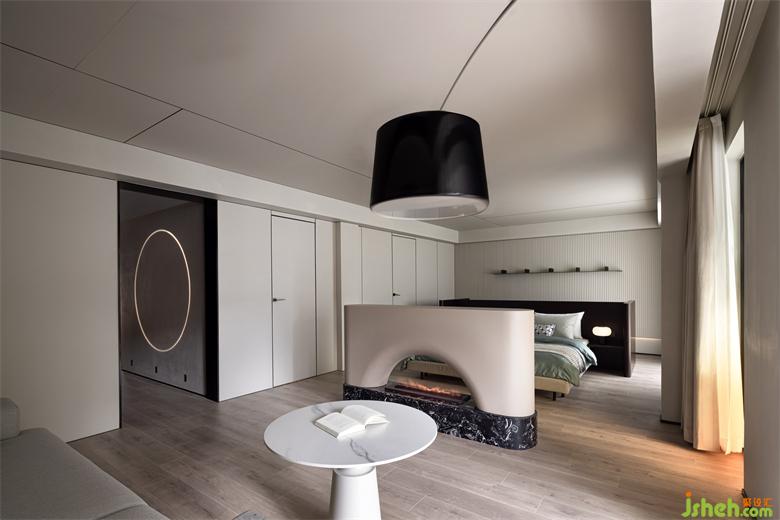 宣紙色的空間如畫卷一般,鋪設(shè)了空間質(zhì)地綿韌、光潔如玉的基色,點(diǎn)點(diǎn)墨暈,翡翠色與硃磦色以點(diǎn)綴的形式室內(nèi)設(shè)計(jì)師出現(xiàn)。