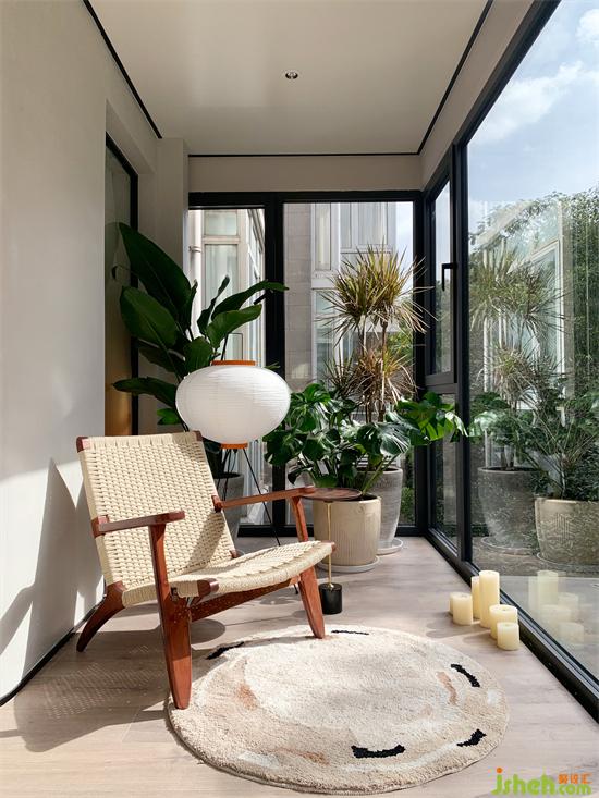 在這個與戶外空間毗鄰的方寸空間,鋪滿了度假感的綠色植物,內與外的空間銜接。純粹的放松,去享受浪漫的居家度假生活。