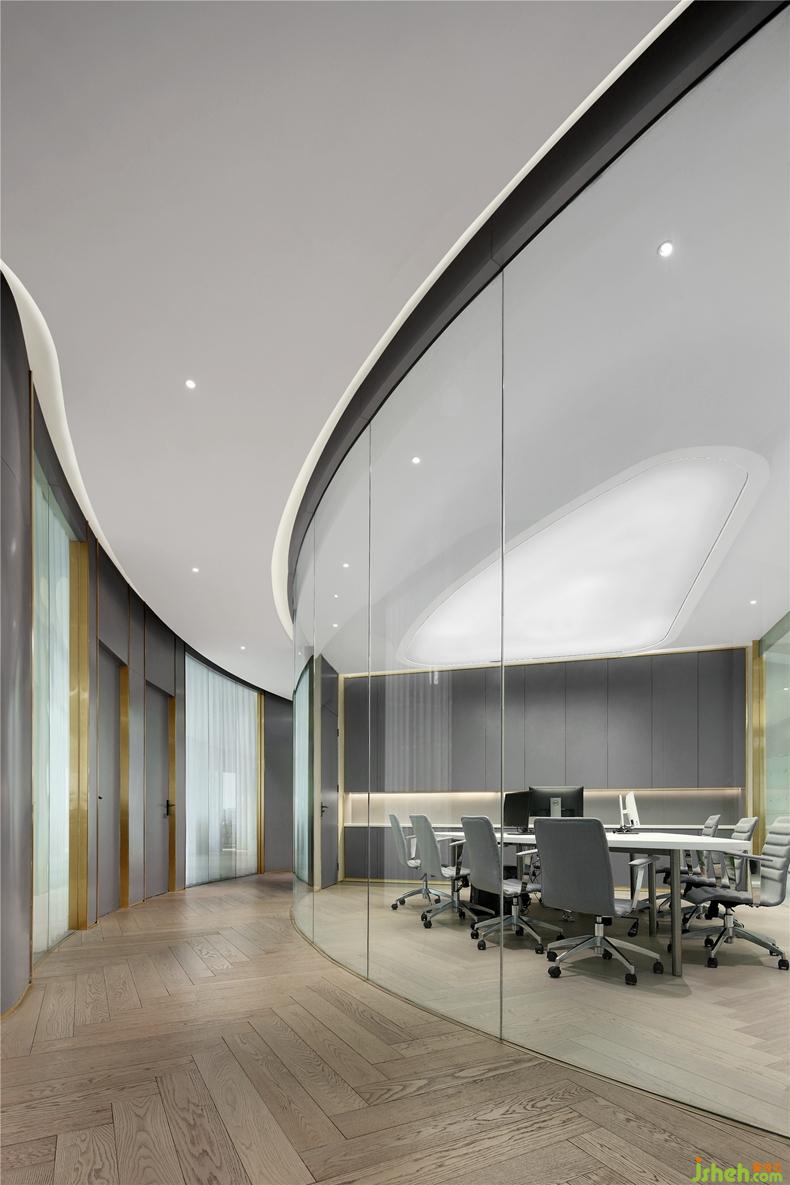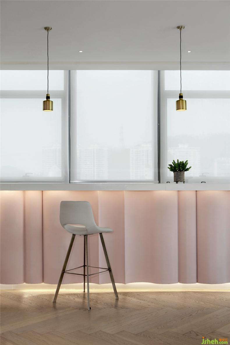 辦公區(qū)以輕薄流動的造型,室內(nèi)設(shè)計(jì)師定制了辦公家具,與燈帶同樣形成呼應(yīng)。從功能動線上來說,工作人員面對展臺的設(shè)計(jì),既便于第一時(shí)間發(fā)現(xiàn)客戶需求,進(jìn)行咨詢與服務(wù),視覺上,流動的曲線也充分體現(xiàn)了美感,并給人輕盈而不沉悶的體驗(yàn)感。