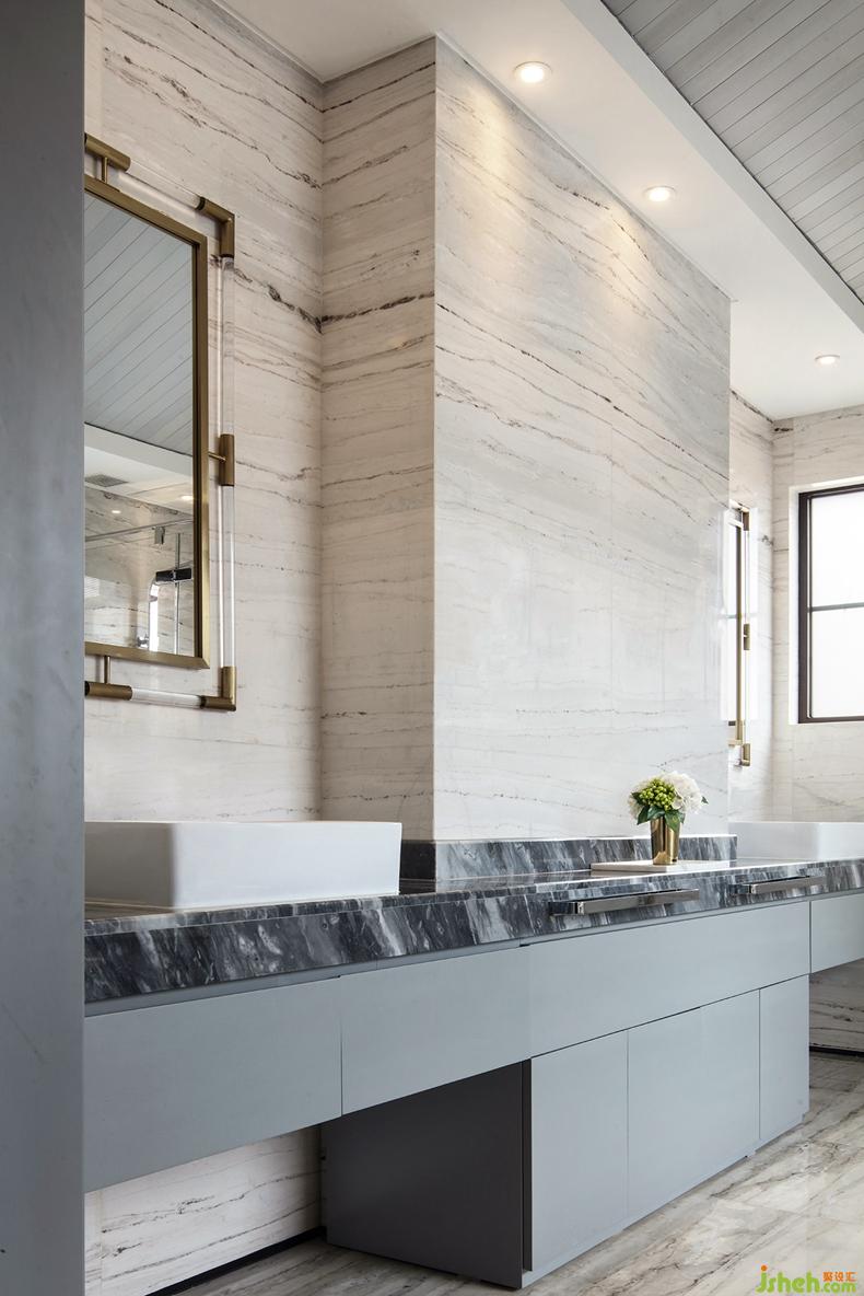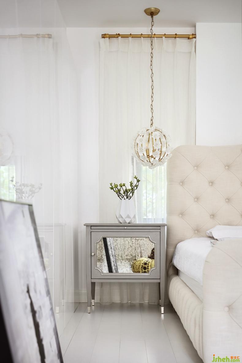 主臥室對(duì)稱式構(gòu)圖與人字形天花設(shè)計(jì),體現(xiàn)出了東方的平衡與穩(wěn)定之美,大面積低飽和度的米灰色墻布,柔和的燈光,儒雅現(xiàn)代的家具形態(tài),烘托出安靜和諧的氛圍。