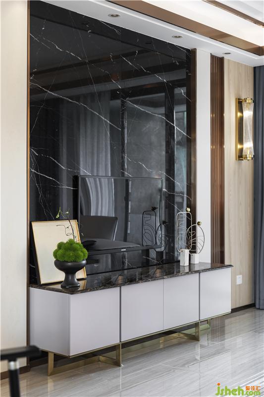 這套我們定調為東方風韻,混搭風格。中式、東方,名詞的確很大、很廣,我們的切入點是有效的時間,財力、能力所及的前提去完成,那么這個范圍就縮短,整體硬裝使用大量金屬條、掛板大理石、花鳥布藝硬包、素色墻布,那么我們想讓整體空間線條流暢,又想把質感表達出來,又穿插出中式的韻味,但又不是很濃郁的格調??臻g以三分亮的魅影黑、丁香灰、畫眉鳥棕為主色調,水藍色、藍綠色、白鷺色,中式緋紅色運用于各種產品元素中。樺木與雅典金花、爵士白等不同材質結合讓整體空間立體起來,用現代手法運用多元化元素在空間中,一副又一副不一樣的新中式東方風格畫面印入眼簾,表達當代中國年輕人對當下生活的領悟!