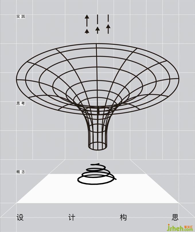 在隱藏?zé)艄庵?,利用金屬的未來感,形成一個時空漩渦,暗示創(chuàng)意在漩渦中集合并引發(fā)更多有趣的思考。