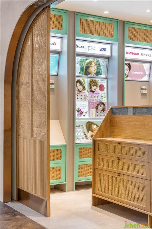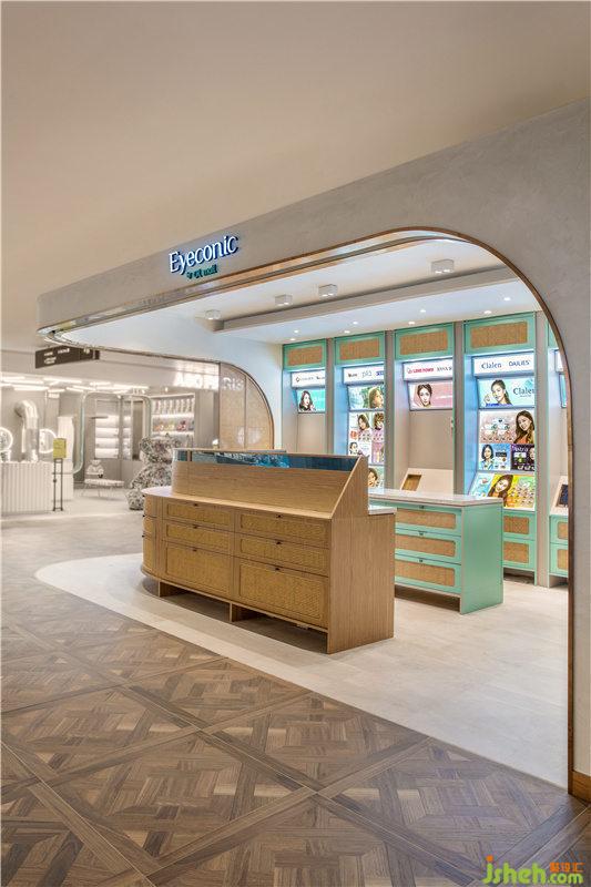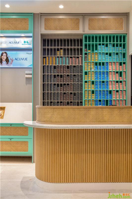 開(kāi)放式的入口及流線型布局讓空間更一目了然,不同顏色與風(fēng)格的隱形眼鏡排列井然有序,通過(guò)產(chǎn)品外觀本身顏色來(lái)構(gòu)建店面色彩體系,既融入品牌基因讓品牌更深入人心,又為店鋪帶來(lái)更多的展示面的同時(shí),也讓經(jīng)過(guò)的消費(fèi)者,不需要付出更多的行為與動(dòng)作成本,直接到達(dá)店內(nèi)選購(gòu)商品,提升獲客能力。