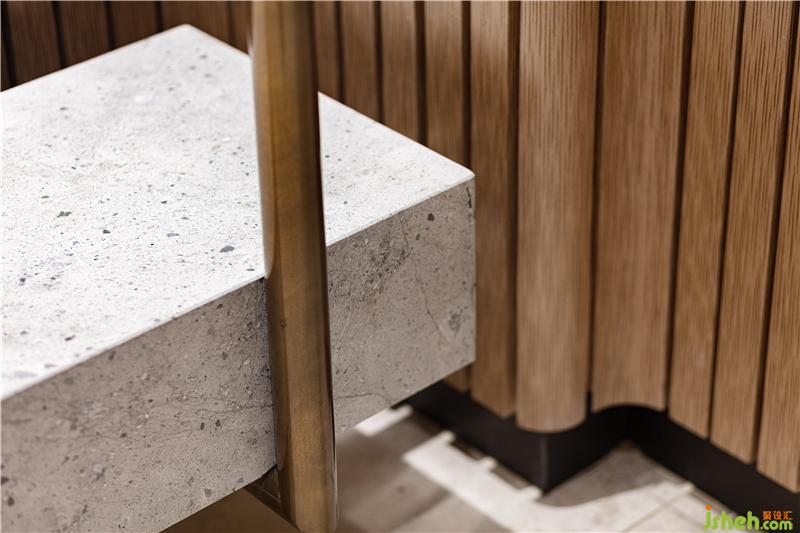 洗手間保持了簡約和優(yōu)雅。柔和的光線包圍著獨立鏡子,而水槽則位于灰色水磨石臺面,避免分散消費者注意力,從而更專注于電影體驗。