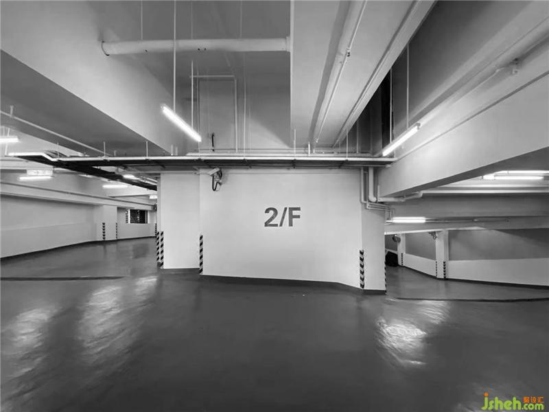 改造前:大面積的灰色地坪漆,易產(chǎn)生視覺(jué)疲勞,且地面車(chē)行劃線(xiàn)不清晰,導(dǎo)致車(chē)輛在車(chē)庫(kù)中迷失。