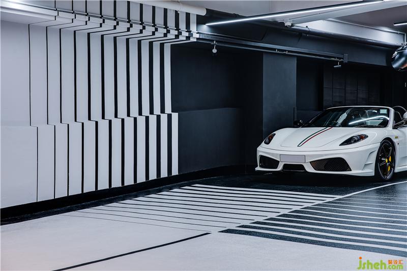 改造前:墻面是車(chē)庫(kù)最常規(guī)的乳膠漆白墻,不耐臟且過(guò)于普通,當(dāng)那些價(jià)值不菲的藝術(shù)品在此停泊時(shí),無(wú)論多出色的外觀(guān)與性能都只能流連在著平庸的場(chǎng)景中。
