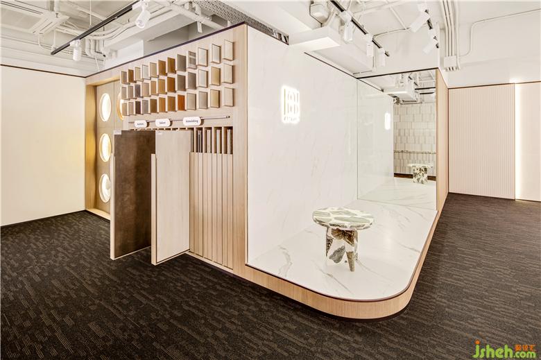 This space provides designers with selection materials in addition to end consumers. Tiles are displayed in sub-regions according to different styles and sizes, and the motion trend is formed through display cabinets, and with different displays, the space is naturally divided to build a systematic, complete and smooth scene experience to enhance consumer efficiency.