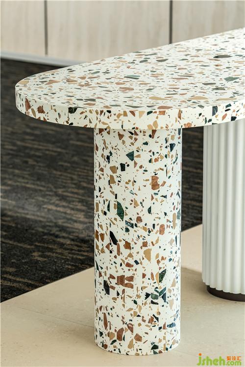 展臺(tái)上,一個(gè)ASA水磨石設(shè)計(jì)的矮凳,是OFT對(duì)瓷磚不同功能的演繹,瓷磚展廳設(shè)計(jì)當(dāng)功能與形式有機(jī)結(jié)合,選擇就變成了一次材料探索之旅,矮凳不僅可以作為設(shè)計(jì)的語言風(fēng)格去傳承與定義,更是具有品牌價(jià)值增量的產(chǎn)品。