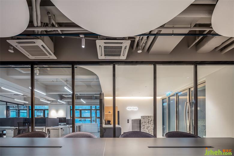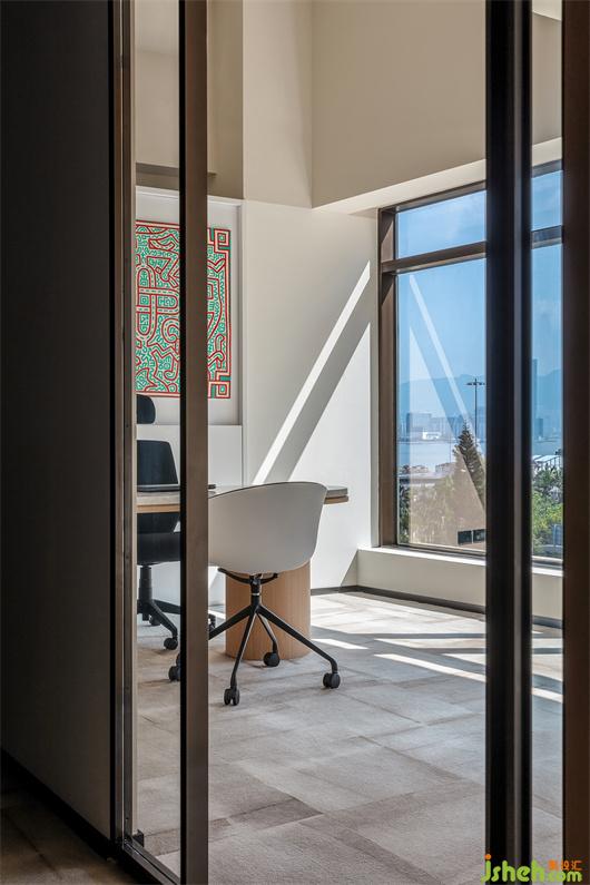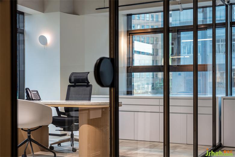 最后,在私密辦公區(qū)中,設計師用大面積玻璃窗將自然光源引入室內,透明的玻璃門,讓整個區(qū)域視野更為開闊。