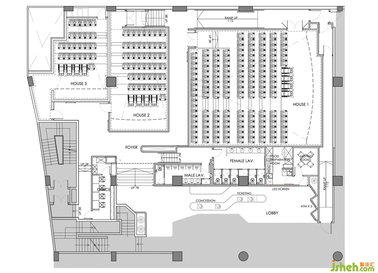 該項目位于九龍城影城舊址,作為周邊唯一的電影院,新影藝具有得天獨厚的優(yōu)勢。OFT設(shè)計摒棄電影院原有結(jié)構(gòu),在布局、影廳數(shù)量上,都進行了全新規(guī)劃。