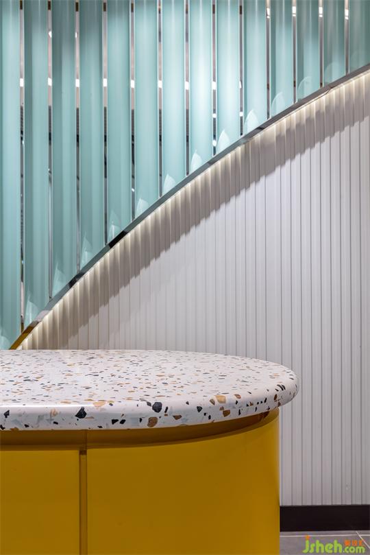 進(jìn)入影廳區(qū),黃綠撞色在這里得到延續(xù),設(shè)計(jì)師用快樂(lè)美學(xué)提醒影迷,卸下生活的盔甲,復(fù)活感受能力。