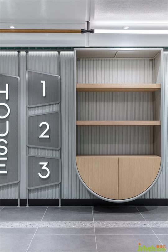售票區(qū)到影廳入口僅幾步之遙,設(shè)計(jì)師用展示架與導(dǎo)視標(biāo)識(shí)串聯(lián)起兩個(gè)區(qū)域。展示架上可放置電影周邊,也可展示影藝發(fā)展歷程,讓年輕人有機(jī)會(huì)去探索與了解香港電影風(fēng)云史,構(gòu)建情感鏈接。