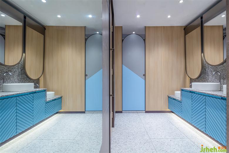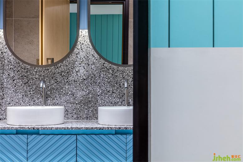 從湖水藍(lán)到天空藍(lán),設(shè)計(jì)師在衛(wèi)生間完成相同視覺之間的自然過渡,懸空鏡面像窗簾一樣垂下,讓封閉空間變得靈動(dòng),仿佛有風(fēng)吹過就會(huì)隨風(fēng)而動(dòng)。