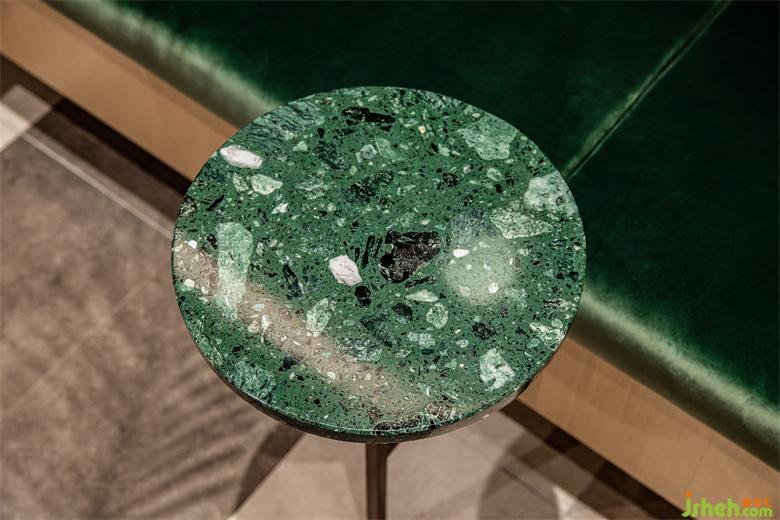 在公共社交區(qū)域,水磨石+人造皮革+木材的材料構成也有其自身寓意:水磨石與人造皮革代表可持續(xù)的生產(chǎn)方式,木則代表了自然和日常,日常具有實實在在的情感記憶以及無聲的力量,電影院設計師以“可持續(xù)的日?!睒嫵蛇@個多功能的聚集空間。