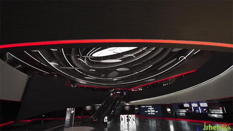 在這一語(yǔ)境中,OFT以全新想象創(chuàng)造未知星球,電影院設(shè)計(jì)靈感來(lái)自科學(xué)家發(fā)現(xiàn)宙中所存在“紅移現(xiàn)象”,即遠(yuǎn)距離星球射向地球的光以紅光為多,設(shè)計(jì)則還原閃爍于銀河系中的幽暗紅光。