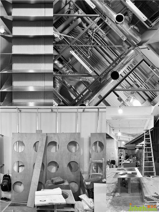 但如何在一個(gè)面積僅225㎡的空間中,塞下展覽、零售、藝術(shù)、社交……這幾個(gè)不同維度的商業(yè)業(yè)態(tài)及空間訴求,它們?cè)谝黄鹗欠駮?huì)產(chǎn)生新的沖突與矛盾?
