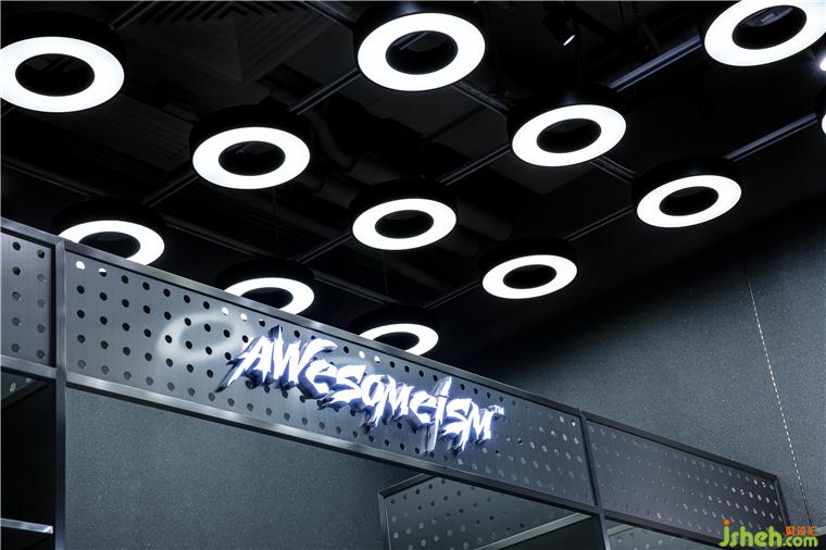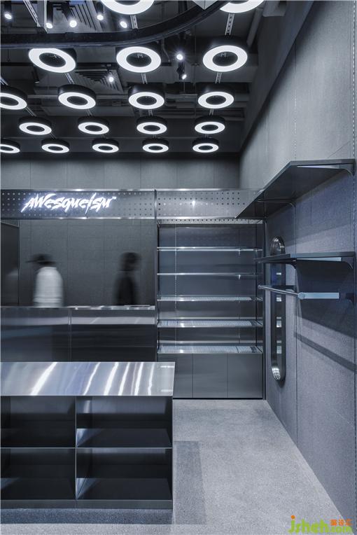餐廳設(shè)計(jì)師還考慮到Keo W. 過(guò)往的創(chuàng)作風(fēng)格屬于暗黑系,喜歡探索不同物料的性質(zhì)與結(jié)合。金屬展示架既契合keo W.創(chuàng)作風(fēng)格,又為藝術(shù)零售與藝術(shù)展覽提供了發(fā)生場(chǎng)所。