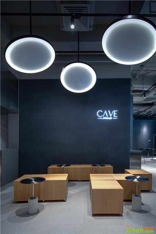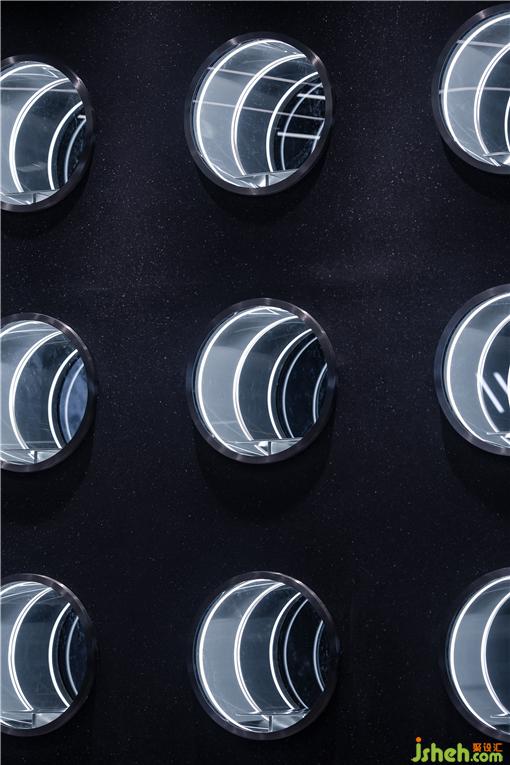 一整面墻上以21個(gè)凸起的透視小窗組成,這些小窗里不僅可以展示不同的潮流藝術(shù)品,還與餐廳品牌CAVE——洞穴的概念形成呼應(yīng),同時(shí)把消費(fèi)者的興趣點(diǎn)變成視覺(jué)焦點(diǎn),把視覺(jué)符號(hào)轉(zhuǎn)化為品牌記憶。