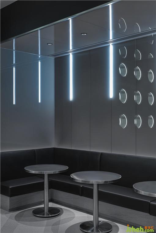 金屬洞洞板中滲出的光影與釣魚也成為空間的氛圍補充。