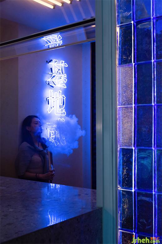 為了突出酒精所帶來的迷幻感,這棟兩層建筑圍繞“未來城市”展開,在反烏托邦電影《銀翼殺手》中,賽博朋克意味著沖突與反叛,這一主題的設(shè)定是為了讓年輕消費者走出日常,進入逃離現(xiàn)實的世界中。