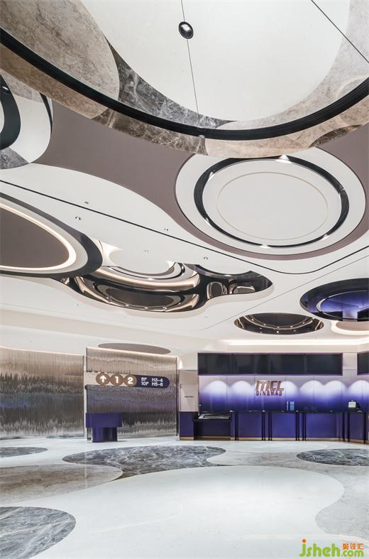 同時,設(shè)計師還大膽采用紫色作為空間媒介,紫色象征著宇宙的神秘、未知的趣味以及超越現(xiàn)狀的發(fā)現(xiàn),引導觀眾在觀影過程中沉浸于無限的想象之中。