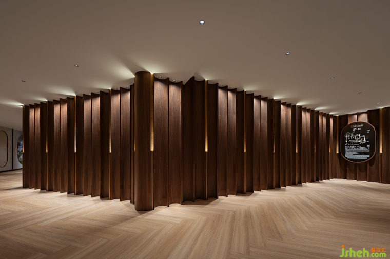 相較于前期路線的探索感,洽談區(qū)更為開(kāi)闊,環(huán)繞式的設(shè)計(jì)也令整個(gè)空間更具安全感與穩(wěn)定感,促使購(gòu)房者完成坐下交流的動(dòng)作。