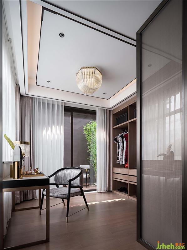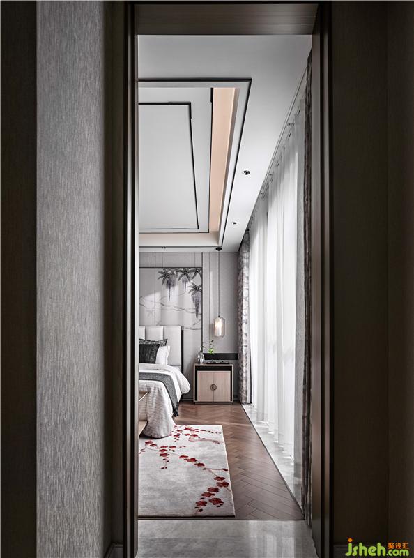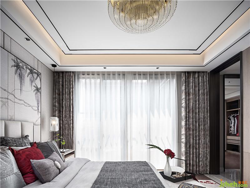 主臥著重于日常間,淺酌盎然回應春意陽光,體現高質感生活細節(jié),于空間每一處,綻放自然明媚的光澤。設計師以明亮調性回應業(yè)主喜好,延續(xù)一貫的東方工筆花草于臥室背景墻,主視覺提升猶如春天般新意。天花設計以白色層次勾勒黑框線,更顯有時尚范的立體層次。別墅裝飾