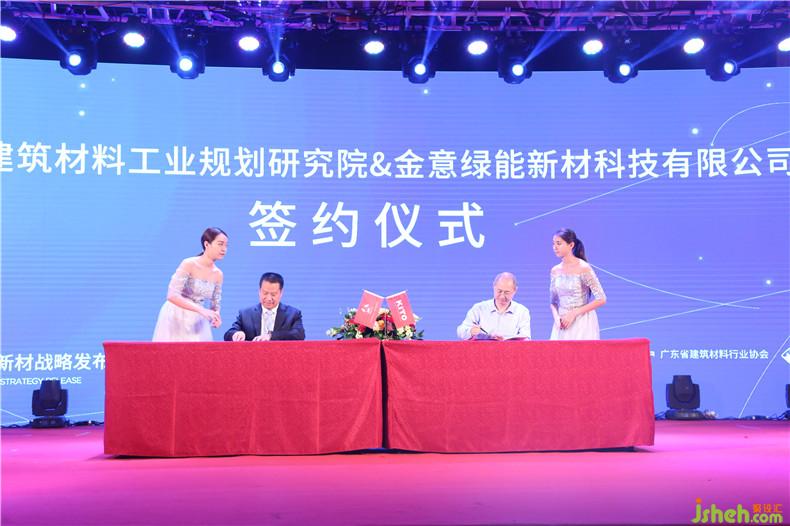 ▲中國建筑材料工業(yè)規(guī)劃研究院與金意綠能新材科技有限公司現(xiàn)場簽約