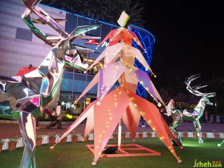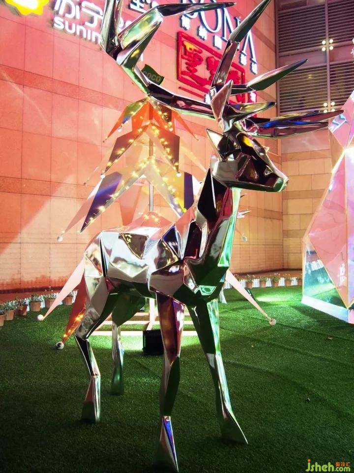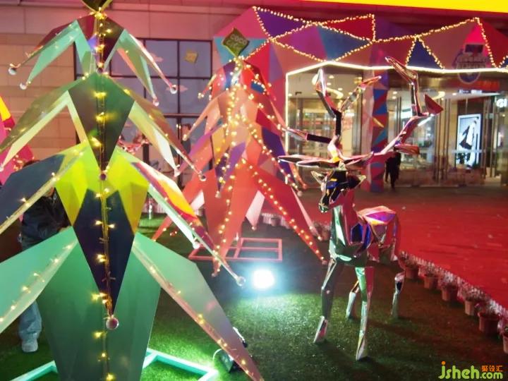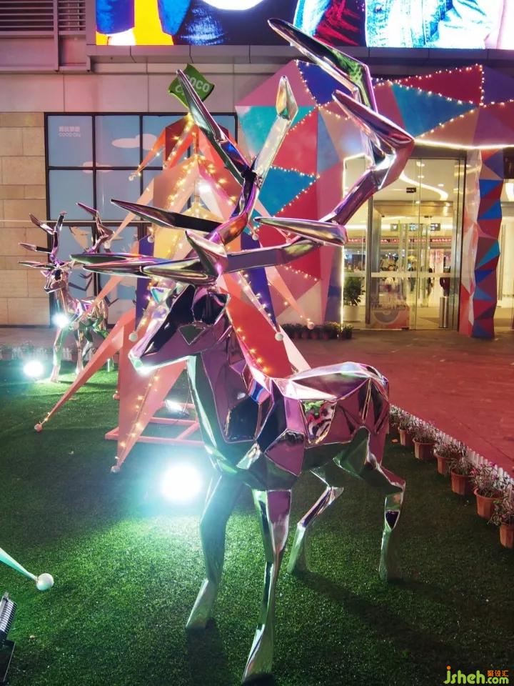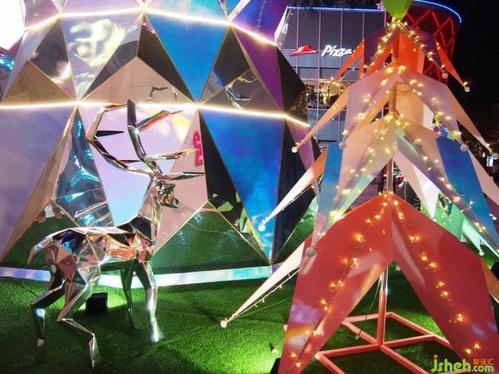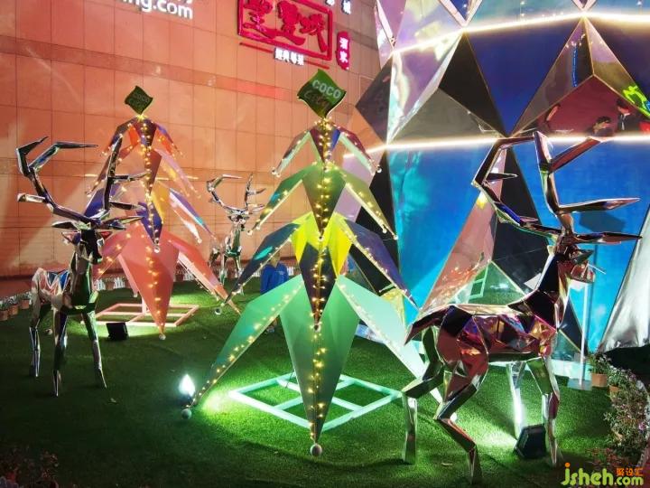 圣誕樹和麋鹿與彩色幾何鏡面的結(jié)合