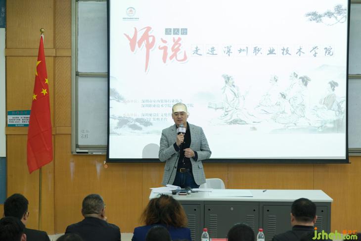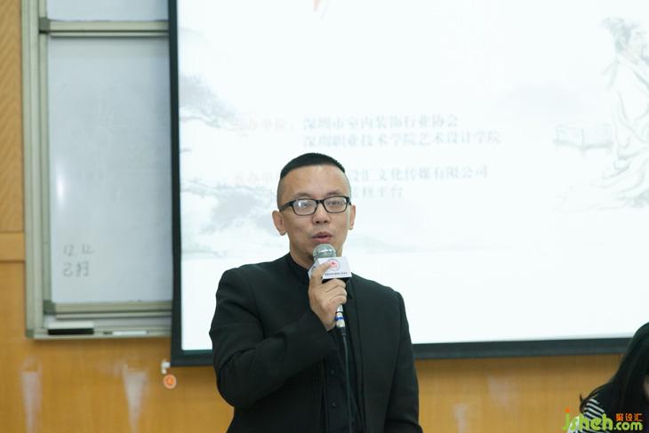 中共深圳市室內裝飾協(xié)會支部委員會書記陳子建上臺致辭,他表示黨支部成立以來,在深圳市社會黨委的領導下,一直積極投入?yún)⑴c系列的公益活動,《師說三人行》活動的成功的舉辦,是校企合作落實到黨建工作中的一部分。