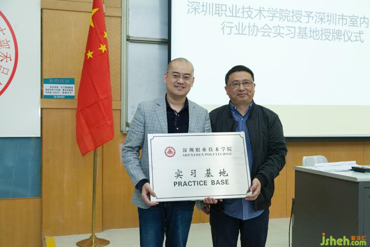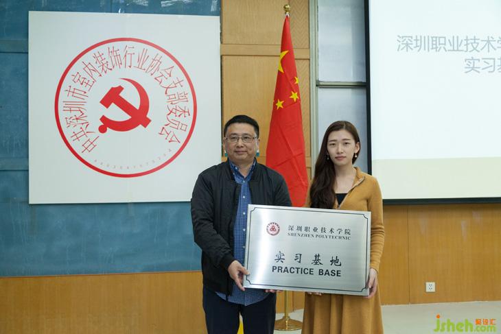 深圳職業(yè)技術學院藝術設計學院副院長帥斌為深圳市室內裝飾行業(yè)協(xié)會授予深圳職業(yè)技術學院實習基地牌匾