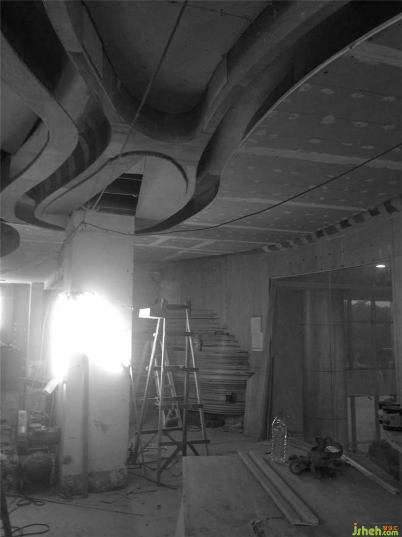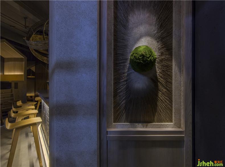 With the traditional Chinese cursive for the blueprint, with bamboo for ink, in space to write, the formation of a unique space device art, rough and publicity to the wooden grille with the formation of straight lines and straight contrast Space has a richer sense of hierarchy and rhythm.